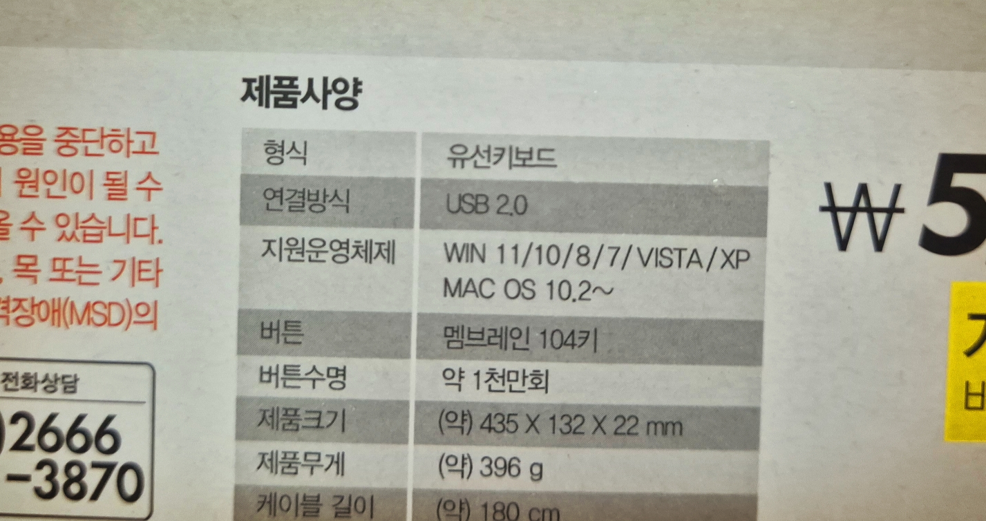 약 2주 뒤인 오늘 다이소에서 유선 키보드를 보고 사왔습니다 아이맥 초기화값 5천원인셈 칩니다😂