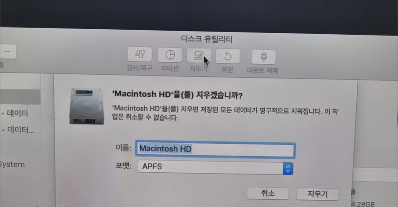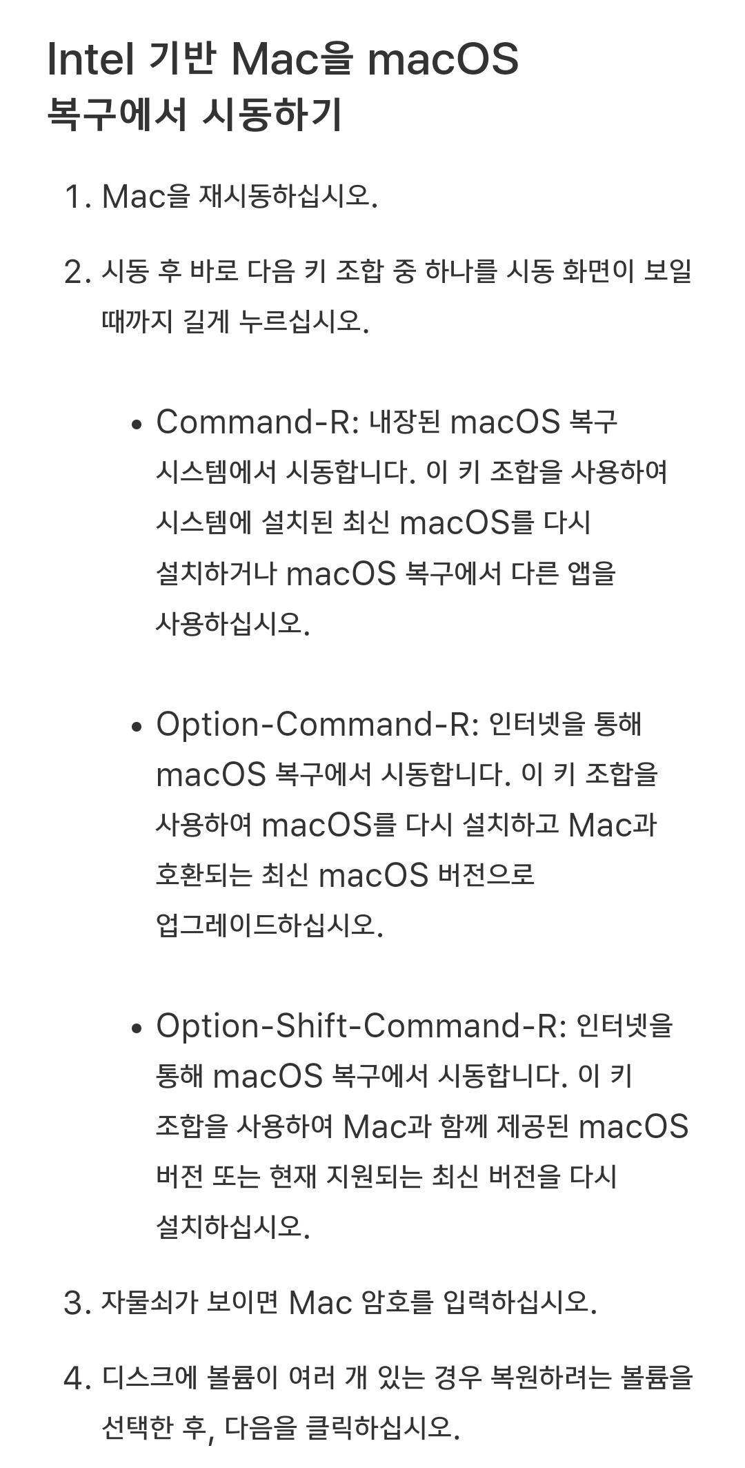 인텔 칩이 내장된 mac을 초기화하는 방법입니다