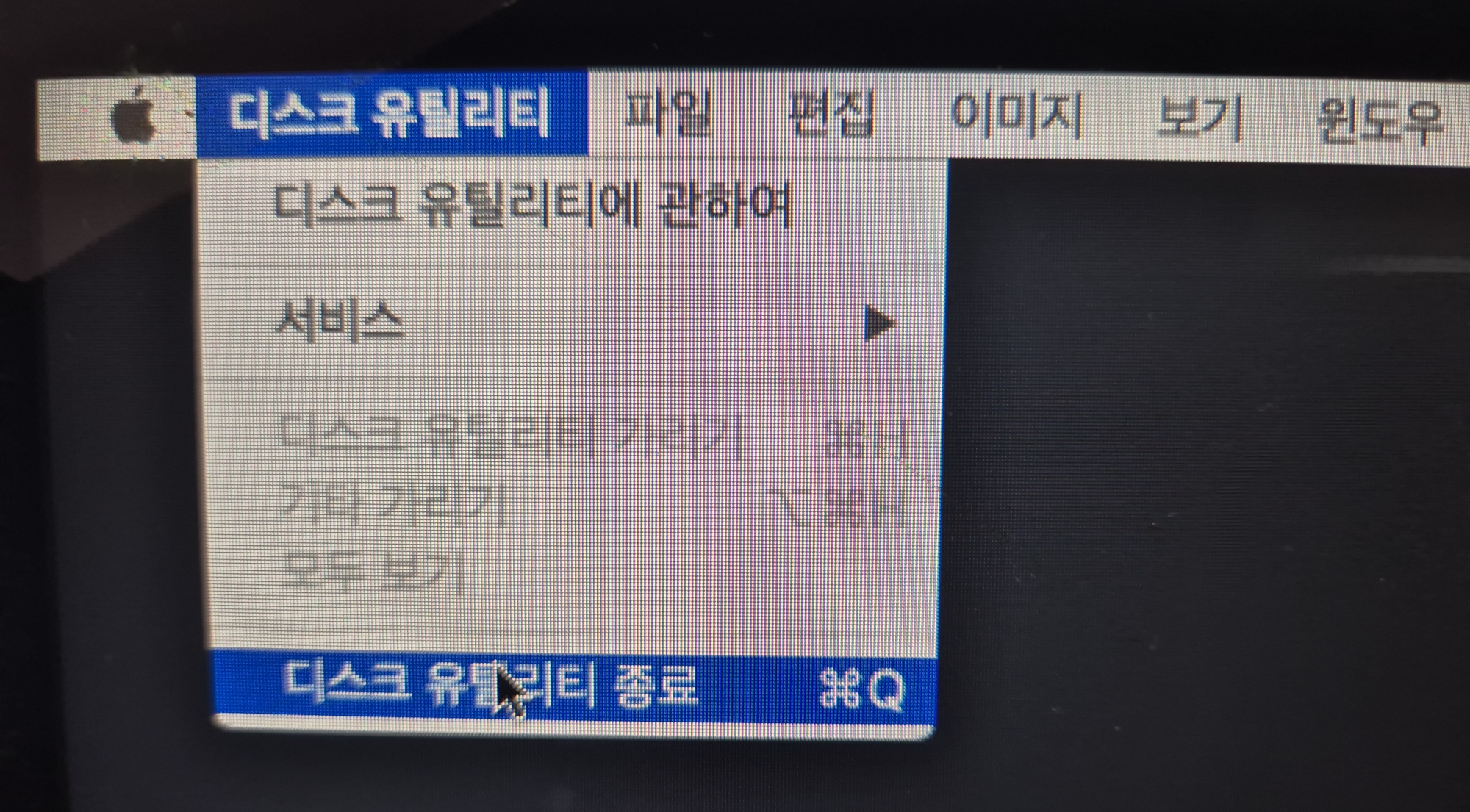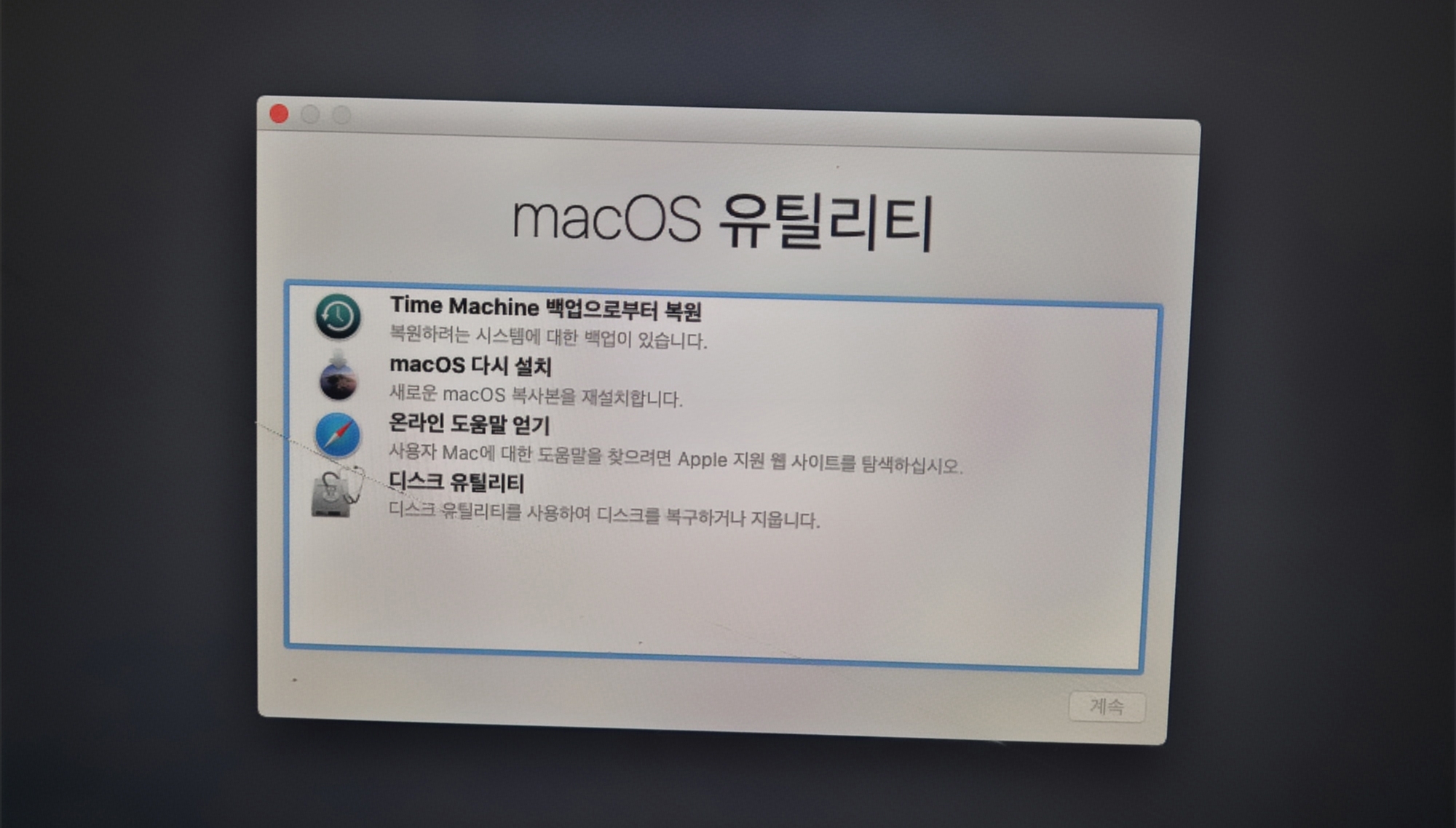 디스크 유틸리티를 종료하면 다시 macOS 유틸리티 화면으로 돌아옵니다. macOS 다시 설치 고고