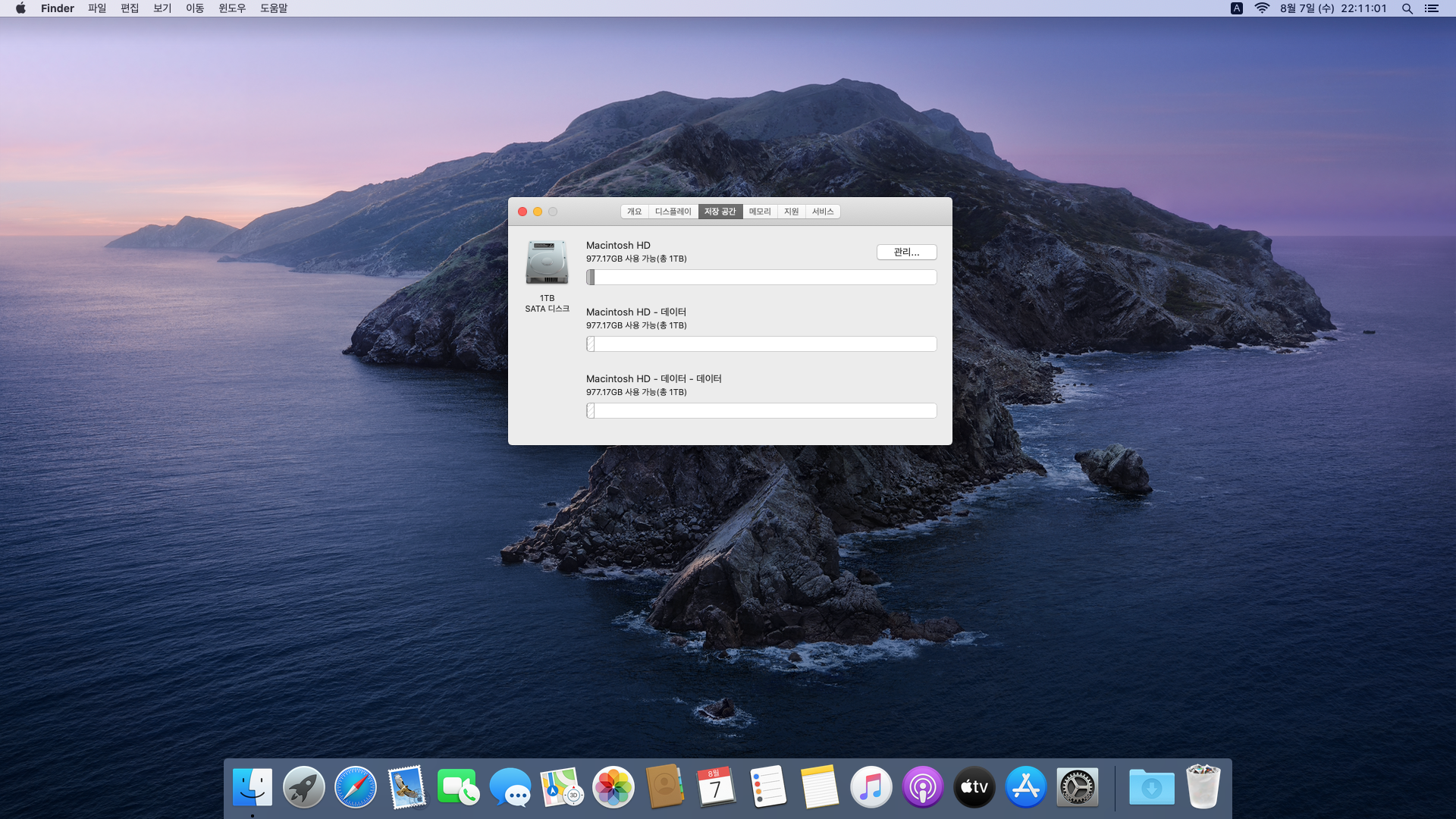 다운 후 언어/위치설정, 애플아이디 설정, 약관동의 등 기초 설정을 마치면 초기화 과정 끝