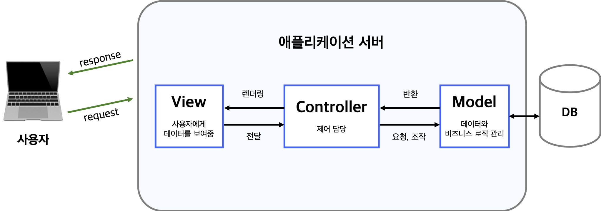 컨트롤러가 모델에 데이터 요청/상태 업데이트
