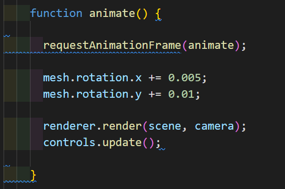 let camera, scene, renderer 사이에 controls를 추가한다.