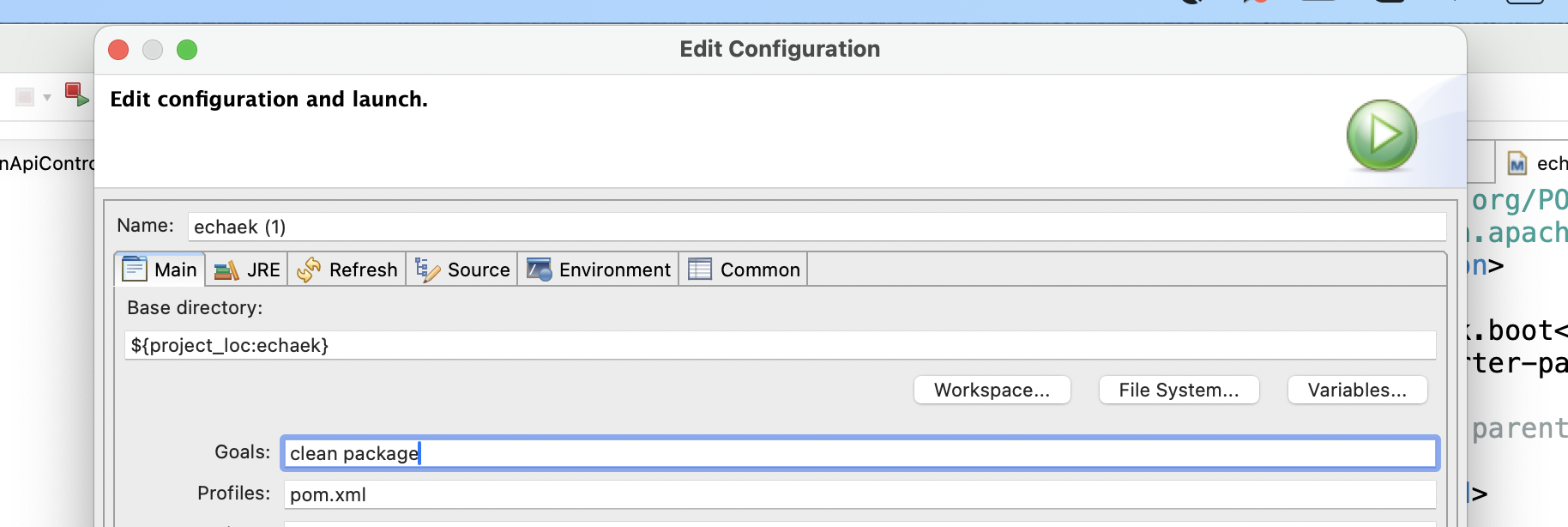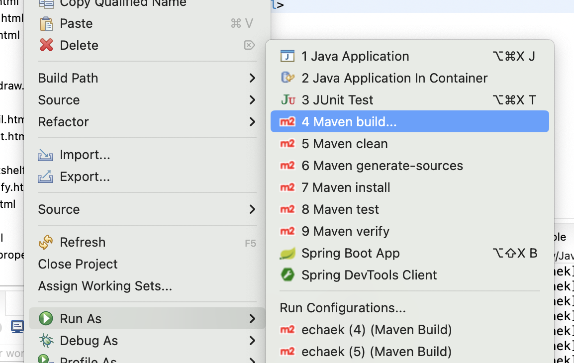 프로젝트 Run as → Maven build