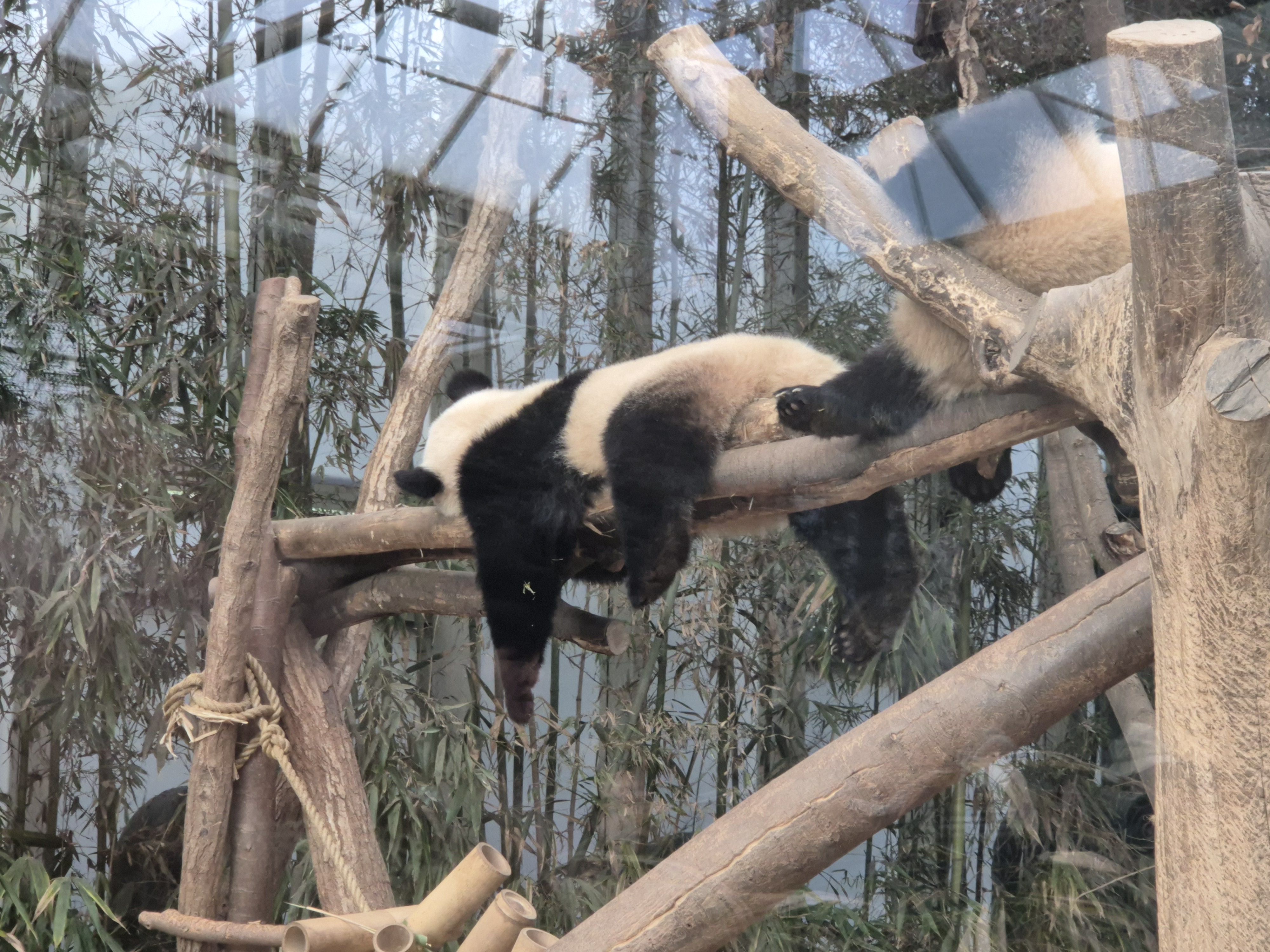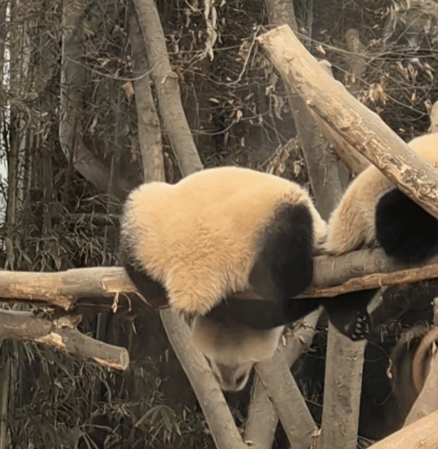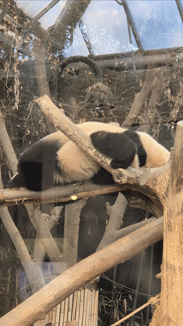들어가자마자 쌍둥바오 중 한 마리가 변을 봤는데 그 후에는 나무 위에 늘어져 거의 움직이지 않았다
