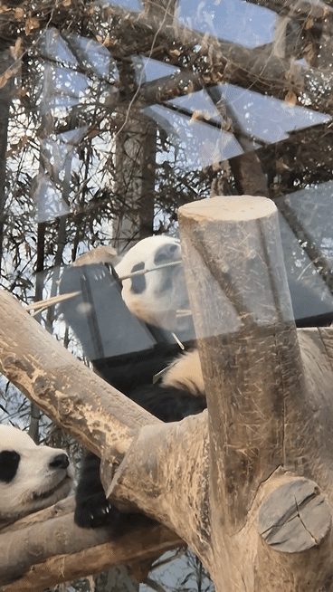 들어가자마자 쌍둥바오 중 한 마리가 변을 봤는데 그 후에는 나무 위에 늘어져 거의 움직이지 않았다