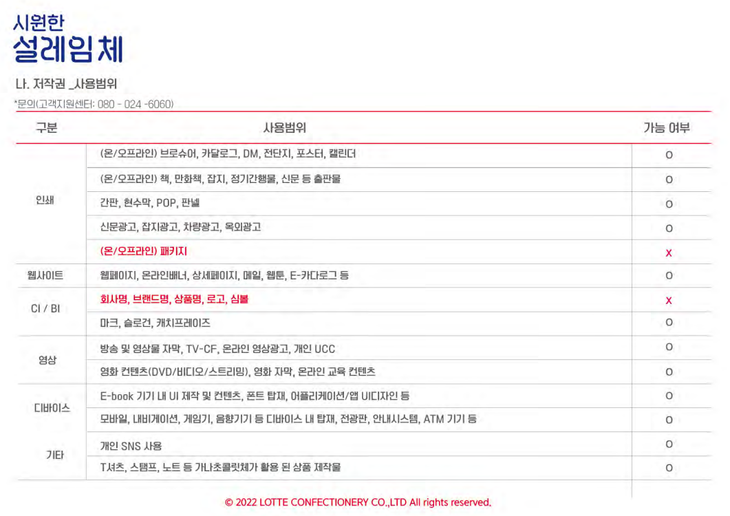 CI/BI나 패키지 인쇄에는 사용이 불가하다.