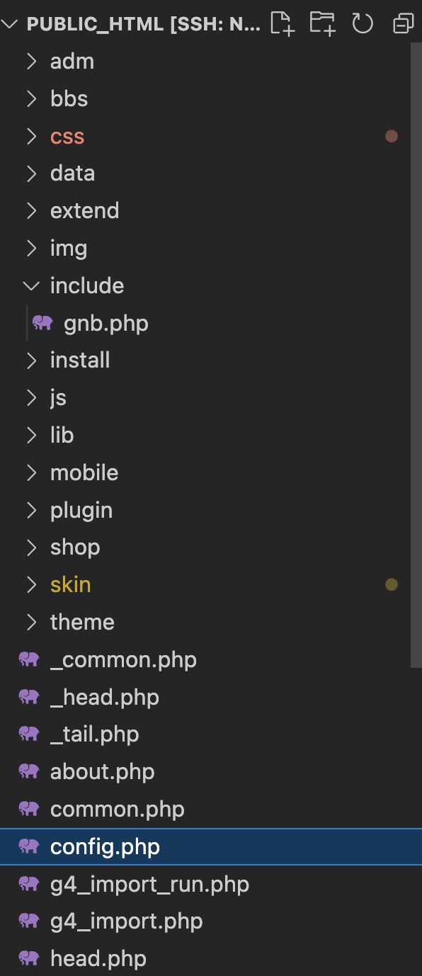 1. public_html의 config.php 파일을 연다.