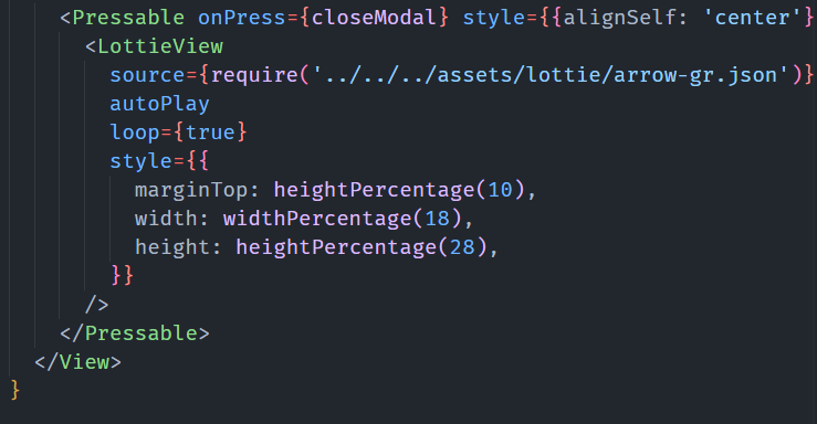 위와 같이 생성한 JSON 파일을 리액트네이티브 앱에 심고 'lottie-react-native'를 통해 적용합니다.